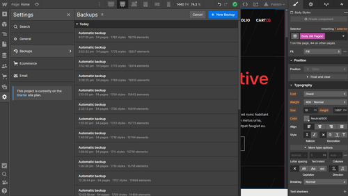 If something goes wrong, for example, if you are not liking where the website is going to, if you deleted some critical classes that were required to make the Template look nice, or if you just want to go to a previous version for any reason, you can always go to the Backups section.